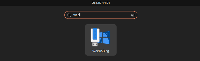 方法 1: 使用图形用户界面化的 WoeUSB 来创建一个可启动的 Windows USB(推荐)从 活动概述activity overview 或菜单中打电脑开 woeusb-gui 。