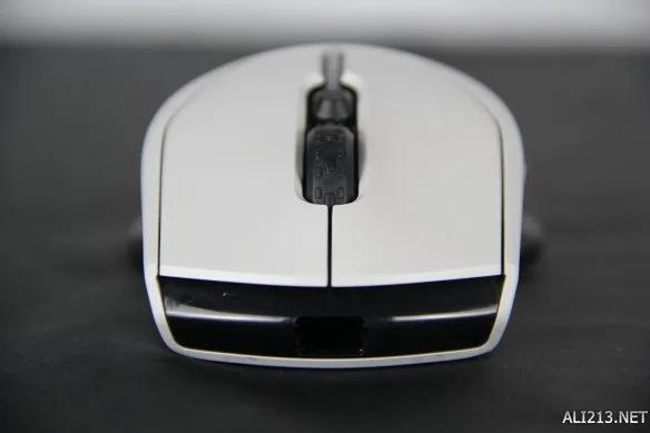 AW610M鼠标左右按键实装的2000万次点击寿命的欧姆龙微动开关具备预载张力,按压手感回馈感强,声音清脆非常令人感到舒适。鼠标滚轮滚动顺滑,可在每转12/24步之间进行切换,档位感清晰外加表面斑点状凸起防滑让操控更为准确,滚轮后方则有着一颗5档DPI飞敏设置钮,通过前后推动可随时随地调节,按钮后方RGB灯条则可根据不同颜色显示对应DPI档位,方便直观。