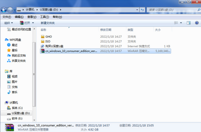 第三步复制g ho文件到u盘双击打开我的电脑打开u深度启动盘里的g hu文件夹