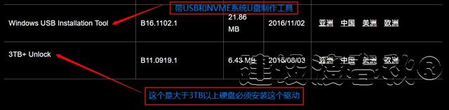 12.下载带USB.NVME驱动工具Windows USB Installation Tool(识别USB鼠标和M.2接口硬盘)如果3TB以上硬盘需要下载3TB+ Unlock(主板官网下载)