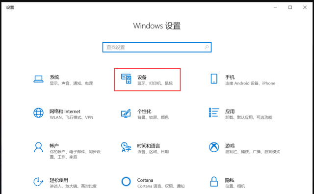 2、在电脑的设置窗口中找到设备,点击进入设备界面。