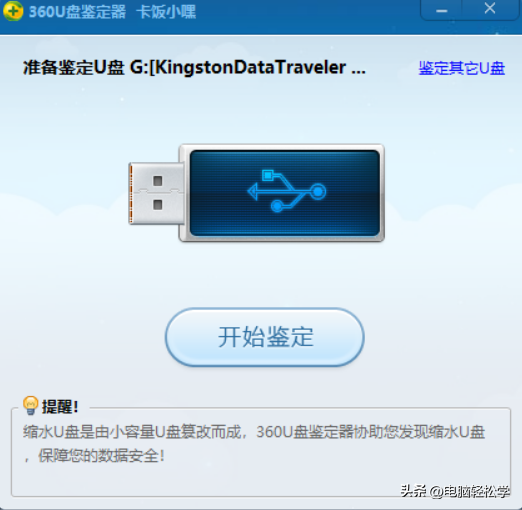 第一步,去网上下载 360U盘鉴定器 或评论区留言,我私发给你。以前在360安全卫士里面有的,现在已下线。