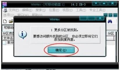 5、出现有分区被找到的提示,点击“确定”。另外还有一个提示没有用处,直接关掉即可。
