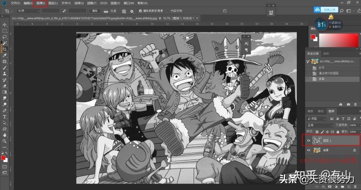 1.首先用PS打开一张图片素材,然后crtl+j复制一层,单击菜单栏上的图像-调整-去色,或快捷键crtl+shirt+u对图片进行去色。